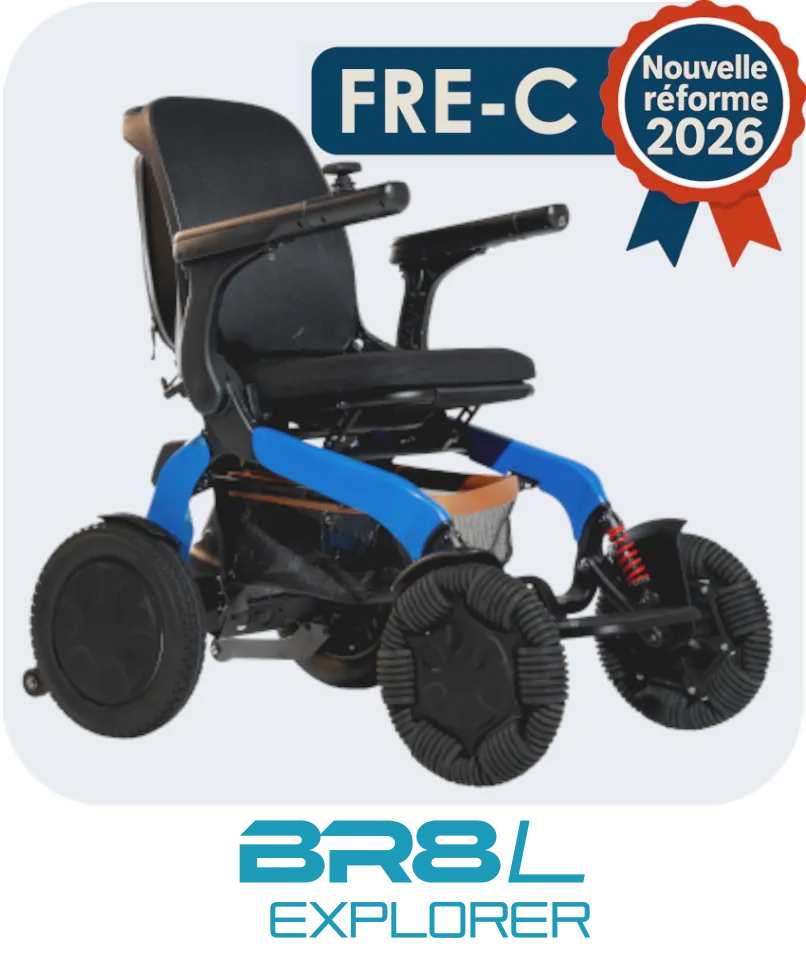 Profitez de sorties en plein air grâce au fauteuil roulant électrique BR8L EXPLORER. Ses roues de 12 pouces permettent de vous déplacer sur différents types de sols, à la maison, en ville, mais aussi sur les pavés, les chemins et sentiers. Ses roues avant omnidirectionnelles offrent une meilleure adhérence lors du franchissement d’obstacles et favorisent les déplacements dans un espace restreint.