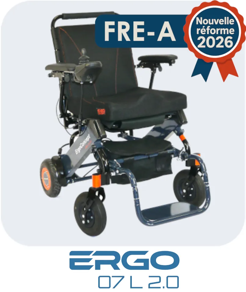 Le fauteuil roulant électrique Ergo 07 est un concentré de technologie au service des utilisateurs. Facile à embarquer dans le coffre d’une petite voiture, Ergo 07L 2.0 est un fauteuil électrique pliable ultra pratique, confortable et léger. Que ce soit pour une utilisation à domicile, pour les sorties du quotidien ou pour un grand voyage, le E07 s’adapte à vos besoins.