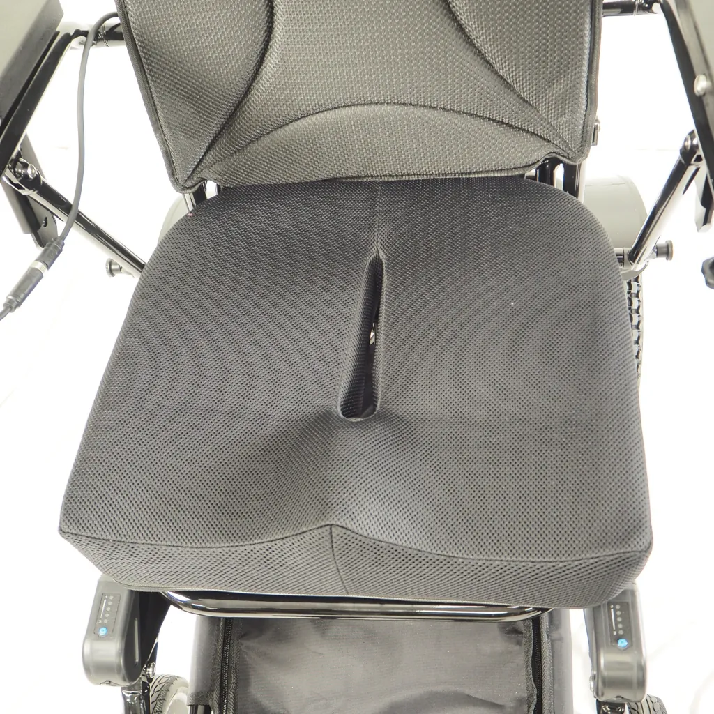 Cette assise offre un confort maximal pour les personnes qui utilisent leur fauteuil de manière régulière et prolongée. La fente permet de réguler la transpiration tandis que la bosse permet un maintien des jambes et un meilleur équilibre sur le fauteuil.