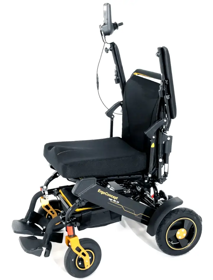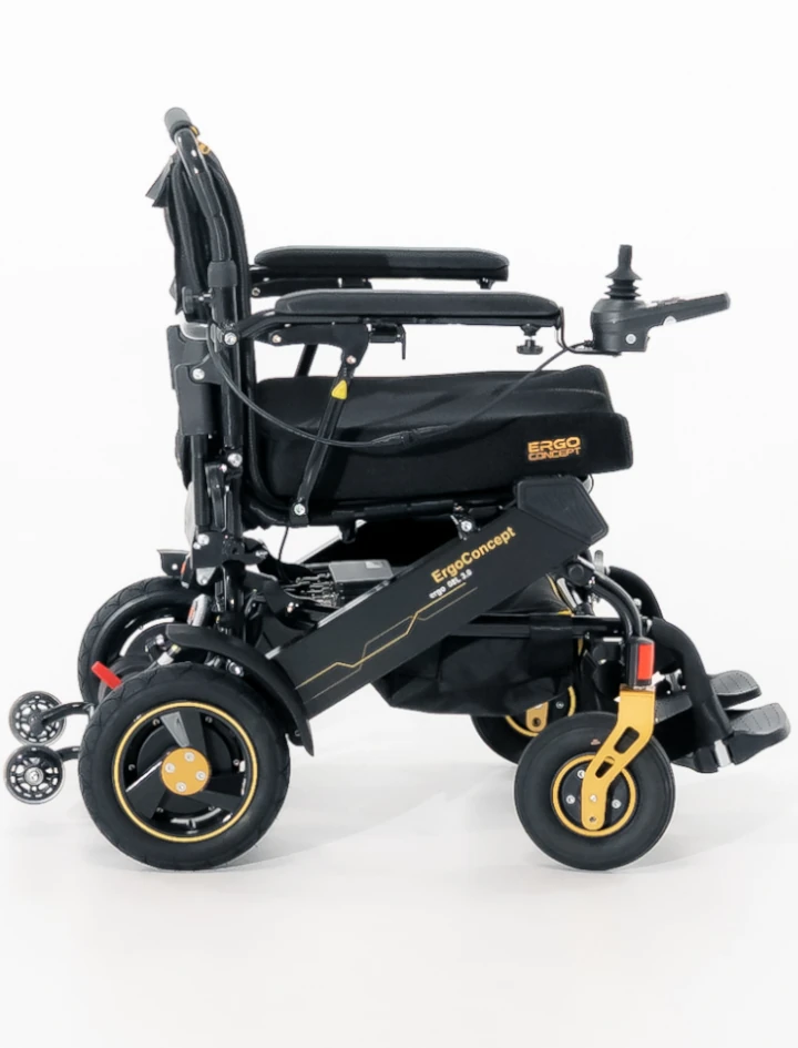Léger, compact et toujours aussi riche en réglages (dossier, repose-pieds, accoudoirs, joystick…), le modèle ERGO 08L 3.0 gagne en caractère avec un design moderne et élégant. Ses lignes épurées, rehaussées de touches dorées, en font un fauteuil aussi agréable à utiliser qu’à regarder. Grâce à sa grande polyvalence et à sa conception pensée pour le quotidien comme pour les déplacements, il s’adapte aux besoins des personnes à mobilité réduite tout en apportant une vraie signature esthétique.