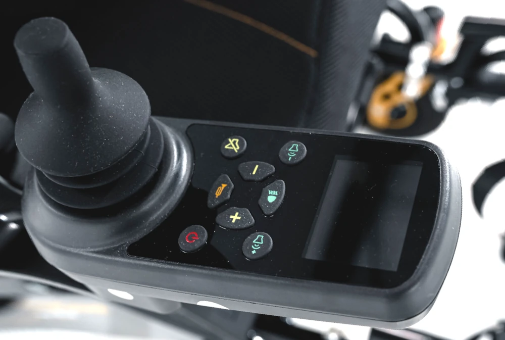 Le joystick du fauteuil roulant pliable ERGO 08 L 3.0 est moderne et permet de se diriger tout en souplesse. Il indique la vitesse et le niveau de batterie. Il est également équipé d’un klaxon afin de mieux se diriger au milieu de la foule ou d’avertir les automobilistes de votre présence.